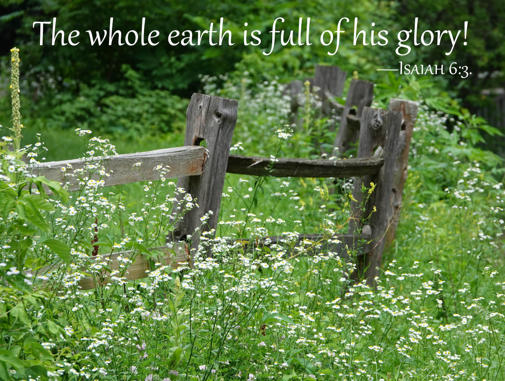 The whole earth is full of his glory! 25 Aug 202028 Nov 2023 ~ Charlie Doe Fence and daisies at Purgatory Creek Park. The whole earth is full of his glory!—Isaiah 6:3. Share this: Share on X (Opens in new window) X Share on Facebook (Opens in new window) Facebook Print (Opens in new window) Print Email a link to a friend (Opens in new window) Email Like Loading... Related